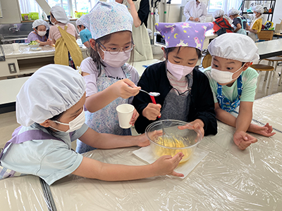 社内認定講師「マヨスター※」が小学校を訪問し、食の楽しさと大切さを伝えることを目的に実施している出前授業「マヨネーズ教室」は2002年より開始し、リピーターとなって繰り返し開催する学校も増えてきました。2024年度は全国99校の小学校で実施し、4,734人の小学生が参加しました。