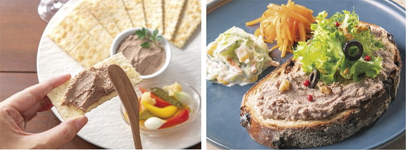 2種(鶏・豚)のレバーを配合した、しっとりとしたなめらかな食感と力強い風味のバランスのよい仕立てのレバーペーストです。そのままバゲットやクラッカーと合わせたカナッペはもちろん、サンドイッチの具材にもおすすめです。