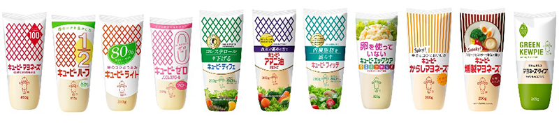 キユーピー マヨネーズ(200g以上)、キユーピーハーフ、キユーピーライト、キユーピーゼロ ノンコレステロール、キユーピー ディフェ、キユーピー アマニ油マヨネーズ、キユーピー フィッテ、キユーピー エッグケア(卵不使用)、キユーピー からしマヨネーズ、キユーピー 燻製マヨネーズ、GREEN KEWPIE 植物生まれのマヨネーズタイプ ![]() |
