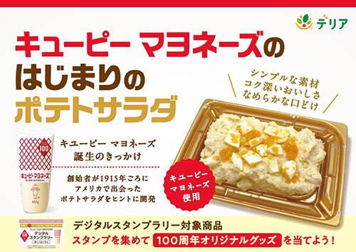 キユーピー株式会社(本社:東京都渋谷区、代表取締役 社長執行役員:髙宮 満、以下キユーピー)は、キユーピー マヨネーズ発売100周年を迎えました。キユーピー マヨネーズ誕生のきっかけとなった「キユーピー マヨネーズのはじまりのポテトサラダ」をグループ会社のデリア食品株式会社※1(本社:東京都調布市、代表取締役社長:竹中 成人、以下デリア食品)が3月1日(土)から3月31日(月)までの期間限定で発売します。