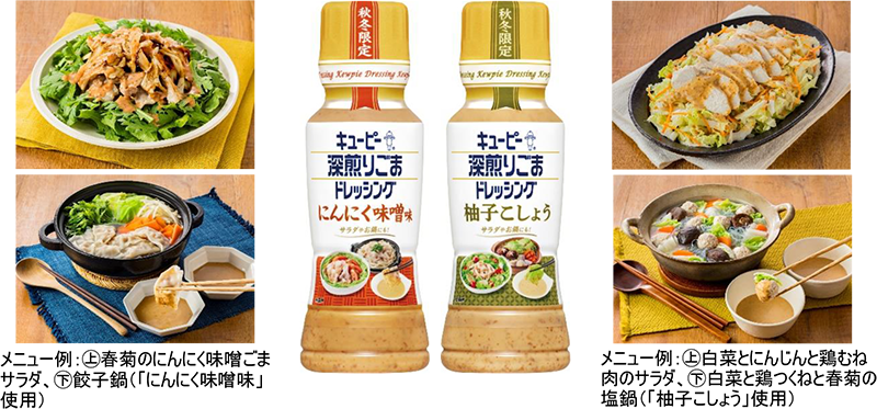キユーピー 深煎りごまドレッシングの季節限定品「にんにく味噌味」「柚子こしょう」の2品を新発売