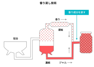 ※3 香り戻し技術:製造工程中に蒸発するフルーツのさわやかでフルーティーな香りをジャムの中に戻すことで、生の果実に近いフルーツ本来の香りに近づけます。