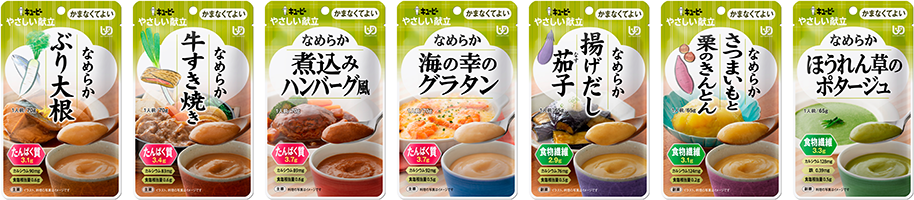 キユーピー株式会社(本社:東京都渋谷区、代表取締役 社長執行役員:髙宮 満、以下キユーピー)は、市販用介護食「やさしい献立」シリーズの“かまなくてよい”区分※から7品を新発売します。“かまなくてよい”区分の商品は、ペースト状やゼリー状など、そのまま飲み込める状態のやわらかさになっています。同区分のやわらかさを手作りするには食事をミキサーにかける等の手間がかかり、また適切な状態に仕上げることが難しい物性です。近年、増加するビジネスケアラーにとってこれらの商品を活用することは調理時間の短縮になり、時間の余裕を生み出すことにつながります。今回の新商品で「なめらか野菜 かぼちゃ」など既存の「素材」系の商品に、ぶり大根や揚げだし茄子、グラタンなど、お客さまが慣れ親しんできた「メニュー」系の商品が加わり、豊富なラインアップで展開します。『いつまでも“食べるよろこび”を感じていただきたい』というキユーピーの思いをこれらの商品に込めています。