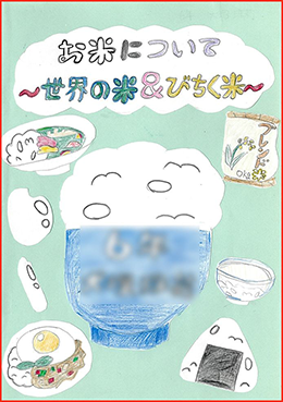 昨年、世界のお米について学び、興味を持ったじゅりさん。お米の形や味、香りまで徹底的に調べ、実際に料理もしてくれました。さらに、ニュースで話題になっている「備蓄米」についても調査し、社会の動きにも視点を向けた作品です。