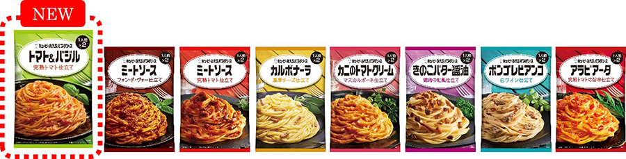 パスタソース市場で最大のカテゴリーである「あえるタイプ」の中でも、人気の高い「トマトフレーバー」に新たなラインアップが加わります。本商品は、完熟トマトのうま味や酸味といったフレッシュ感と、国産バジルの爽やかな香りが楽しめるソースです。