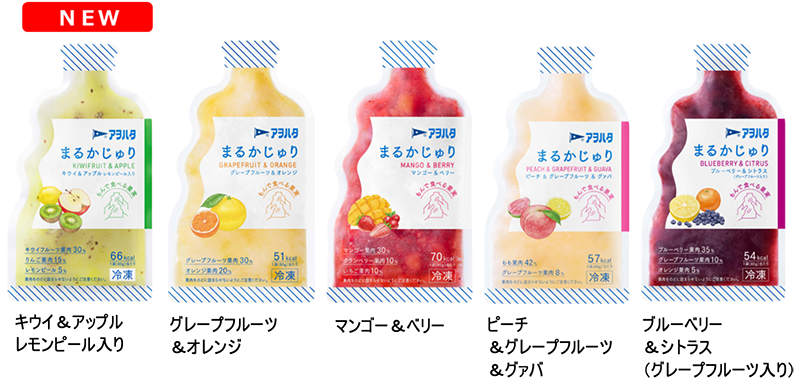 パウチ入り冷凍フルーツ「アヲハタ まるかじゅり」シリーズから 「キウイ&アップル レモンピール入り」を発売