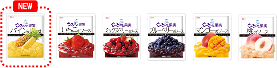 シリーズラインアップは、「いちご」「ミックスベリー」「ブルーベリー」「マンゴー」「桃」と新商品の「パイン」の全6品で展開します。