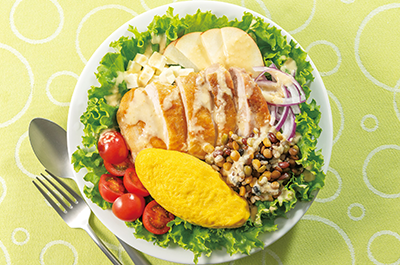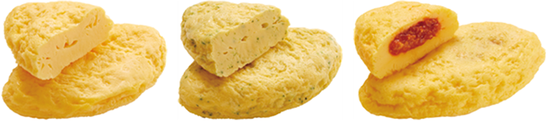 今回のリニューアルでは、オムレツの表面をなめらかにすることで、より手作りらしい形状に仕上げました。ラインアップは、さまざまなソースに合うようシンプルな味付けにした「プレーン」のほかに、ほうれん草を加えて彩りよく焼き上げた「ほうれんそう」と、トマトとひき肉のソースを包んで焼き上げた「トマトミート」の3種類です。そのままはもちろん、トッピングとしてもおすすめです。
