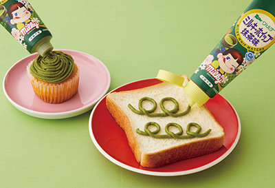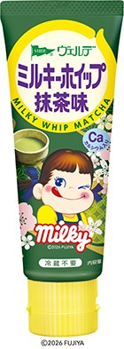 - 「ミルキー」と同じ練乳原料に抹茶をブレンドした、生クリームのようなくちどけのふんわり軽いホイップです。(香料、着色料不使用)