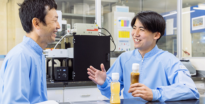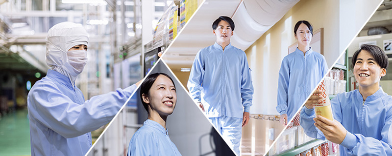 食品メーカーの根幹となる『ものづくり』の業務は、ただ効率よく商品を製造するだけではありません。お客様が求める「おいしさ」とは何か、安心して召し上がっていただけるための品質はどうすれば実現できるのか。常に現状に満足することなく、お客様視点での商品づくりに徹底的にこだわった仕事をしています。常に一緒に働く方と綿密なコミュニケーションを取りながら、より新しく、よりおいしく。ときには、研究開発や営業部門などさまざまな現場の橋渡し役となって商品設計に携わることもあります。