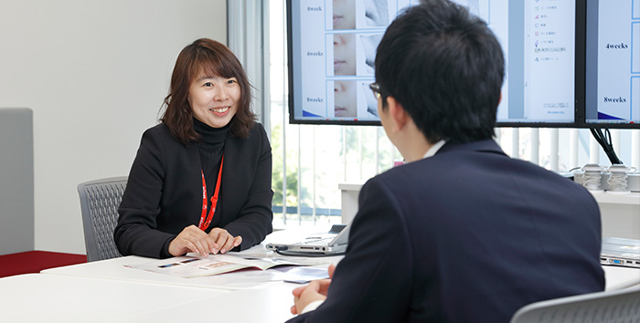 家庭用営業やフードサービス営業のような食シーンのご提案とは異なる領域で、ヒアルロン酸や卵黄レシチンなどの素材を医薬品、化粧品、食品の原料として、主に業務用のお客様に販売をしています。国内外からの高い関心を受けて、海外のお客様との取引も拡大しています。