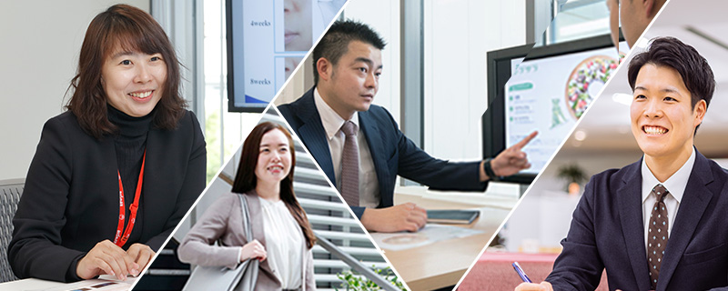 キユーピーとお客様との接点に最も近い「営業」。キユーピーの営業は、価格提示をして買っていただくだけが仕事ではありません。季節に合わせた旬の素材や年間を通じたイベント、野菜の価格高騰など、食を取り巻く環境は刻々と変化します。どの様な食シーンでおいしさをもっと楽しんでいただくか、さまざまなことをイメージしながら仕事をしています。